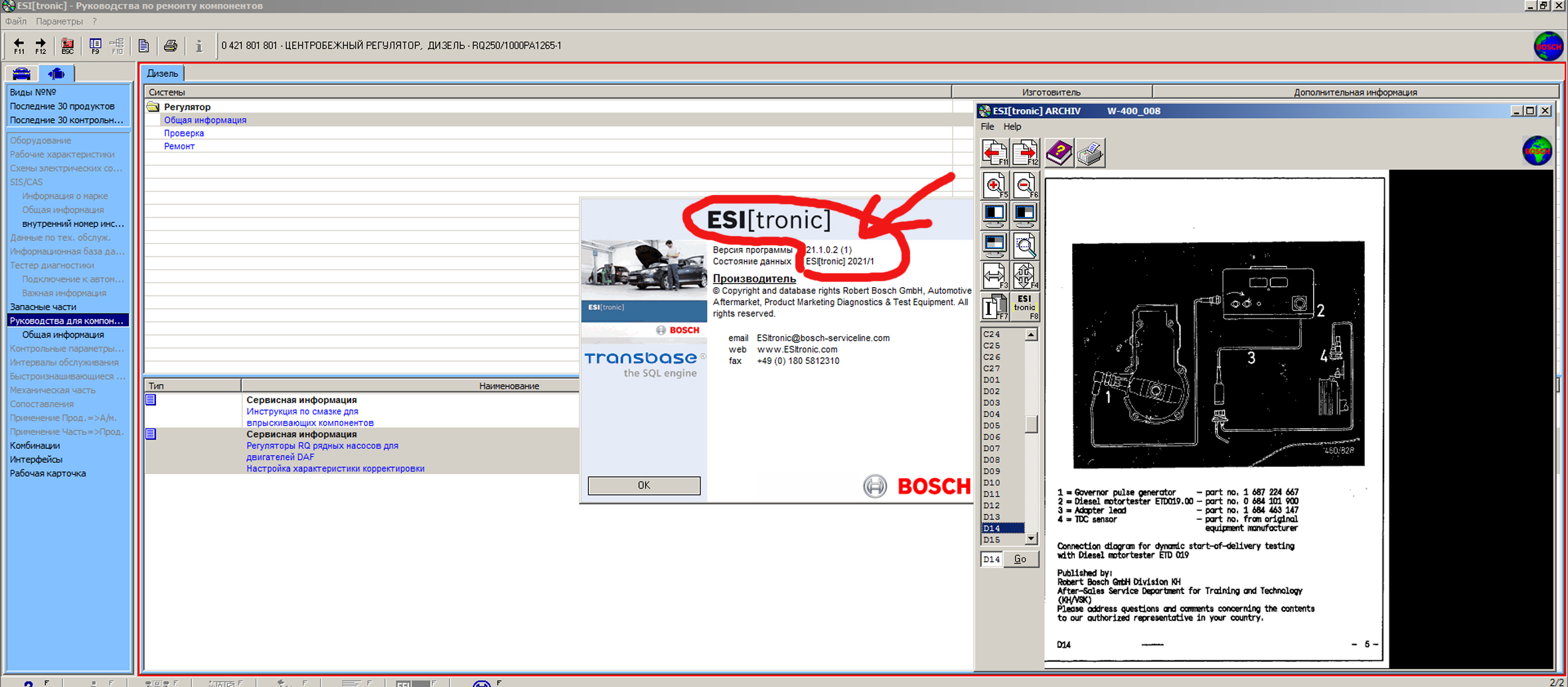 Каталог Bosch ESI содержит каталог запчастей о всей продукции Бош, руководство по ремонту авто, электросхемы авто, нормо часы Каталоге Bosch ESI tronic содержиться информация об автомобильных запасных частях, нормо-часах, юстировочных данных ТНВД (топливных насосов высокого давления), программы для работы с блоками диагностики фирмы BOSCH,